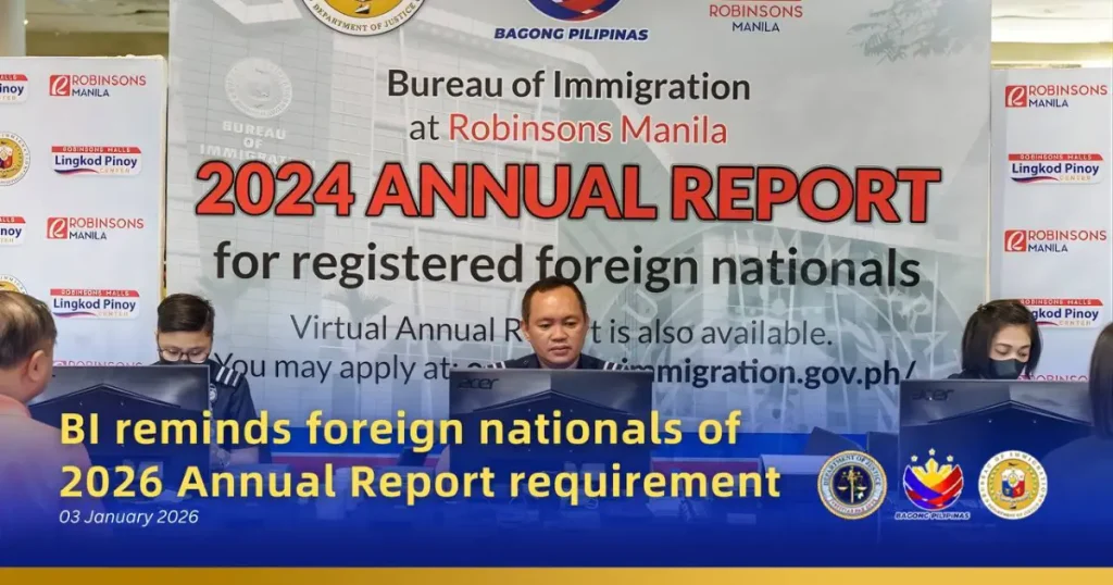 Under the law, all registered aliens are required to report in person to the BI within the first sixty (60) days of the calendar year, or from 01 January to 01 March 2026.